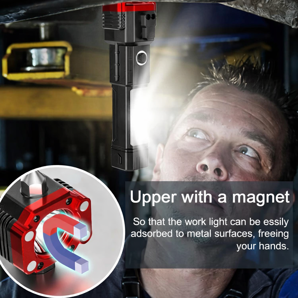 Multi-Functional Design: Hammer 🔨, torch 🔦, screwdriver 🪛, wrench 🔧, bottle opener 🍾, and more in one compact tool.